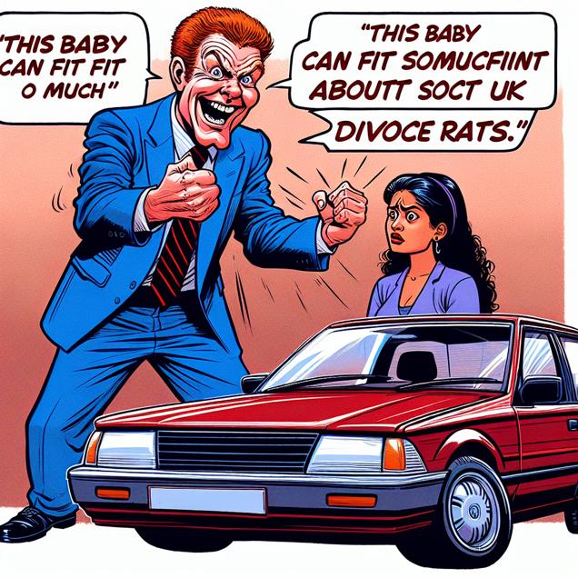 Create a meme inspired by the slaps roof of car meme that in some way references Divorce rates in the United Kingdom. Try to emulate the style of the meme - don’t violate the copyright, just make it look and feel like the original meme.