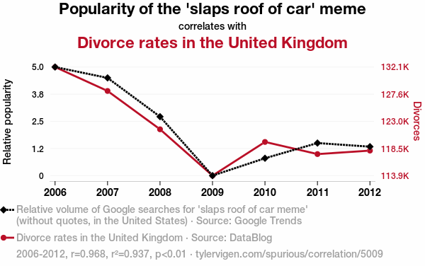 "slaps roof of car" meme, divorce rates, United Kingdom, correlation coefficient, Google Trends, DataBlog, societal dynamics, meme culture, chuckle-inducing, viral meme, internet phenomenon