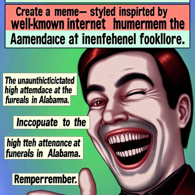 User prompt: Please make up a funny explanation for how an increase in Popularity of the 'trollface' meme caused The number of funeral attendants in Alabama to increase. Include one good pun.