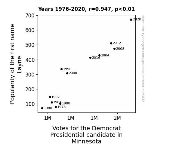 - The spurious research paper: The Ballad of Layne and Left Leaning: Exploring the Link Between Layne's Popularity and Democratic Presidential Votes in the Land of 10,000 Lakes