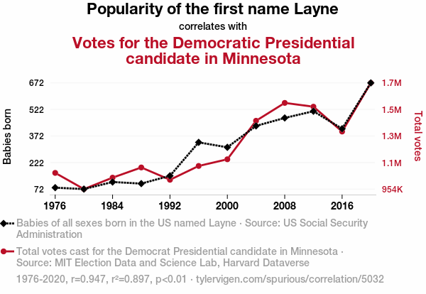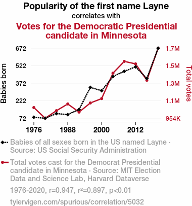 - The spurious research paper: The Ballad of Layne and Left Leaning: Exploring the Link Between Layne's Popularity and Democratic Presidential Votes in the Land of 10,000 Lakes