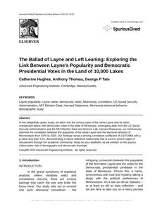 The Ballad of Layne and Left Leaning: Exploring the Link Between Layne's Popularity and Democratic Presidential Votes in the Land of 10,000 Lakes Journal of Political Popularity and Voting Behavior Jan 2024 Reminder: This paper is AI-generated. Not real! |