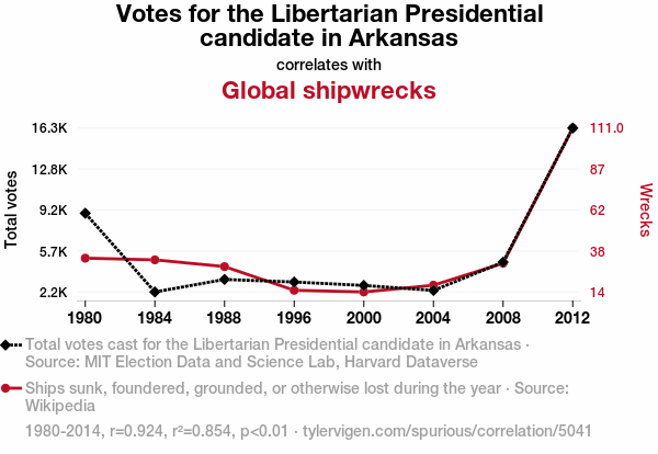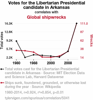 - The spurious research paper: Sailing the Waves of Political Preferences: Unraveling the Connection Between Libertarian Presidential Votes in Arkansas and Global Shipwrecks