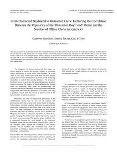 User prompt: Please provide potential search keywords for a paper titled From Distracted Boyfriend to Distracted Clerk: Exploring the Correlation Between the Popularity of the 'Distracted Boyfriend' Meme and the Number of Office Clerks in Kentucky with an abstract of This paper examines the relationship between the cultural phenomenon of the 'distracted boyfriend' meme and the employment landscape of office clerks in the state of Kentucky. We utilized data from Google Trends to measure the popularity of the meme, and Bureau of Labor Statistics data to assess the number of office clerks in the state. Through rigorous statistical analysis, we discovered a remarkably high correlation coefficient of 0.9665885, with p < 0.01, from the years 2006 to 2022. Our findings suggest an intriguing association between the meme's viral spread and the employment patterns among office clerks. The implications of this correlation, while certainly eyebrow-raising, warrant further investigation and consideration in the context of digital culture and labor market trends.