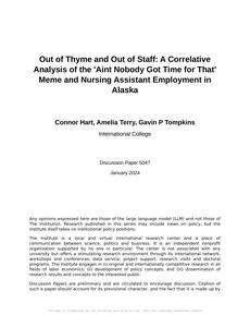 Out of Thyme and Out of Staff: A Correlative Analysis of the 'Aint Nobody Got Time for That' Meme and Nursing Assistant Employment in Alaska Journal of Memetics and Occupational Trends Jan 2024 Reminder: This paper is AI-generated. Not real! |