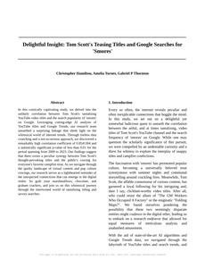 Please draft the title and abstract of an academic research paper presenting the findings of the connection between How insightful Tom Scott YouTube video titles are and Google searches for 'Smores'. Make lots of jokes, goofy observations, and puns.