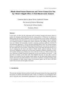 - The spurious research paper: Rhode Island Senate Democrats and 'Never Gonna Give You Up' Meme's Ripple Effect: A Nick Rhyme-tastic Analysis