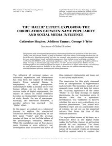 The 'Hallie' Effect: Exploring the Correlation between Name Popularity and Social Media Influence The Journal of Social Nameology Jan 2024 Reminder: This paper is AI-generated. Not real! |