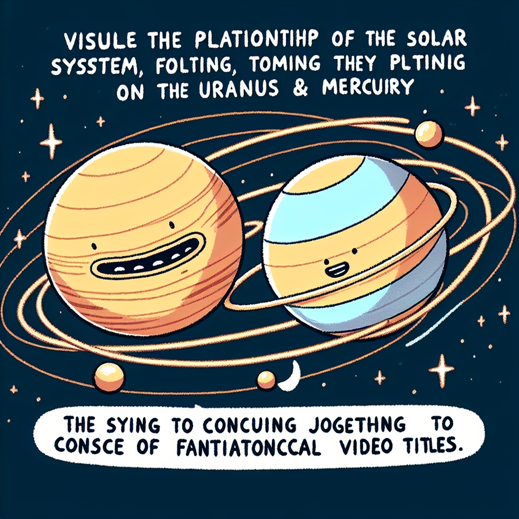 Prompt: Generate an image of the solar system with Uranus and Mercury in their orbital paths. Show Uranus and Mercury moving closer together, while speech bubbles burst forth from their orbit, filled with pun-tastic AsapSCIENCE video titles such as "The Gravitational Pull of Dad Jokes" and "Apollo-Gize for these Puns!" Depict a playful celestial dance that signals the rise of even cooler YouTube video titles. The image should have a playful and whimsical feel to it, capturing the unique interaction between the planets and the humorous video titles. The depiction should include only scenes, people, and objects, it should not include text or speech bubbles.