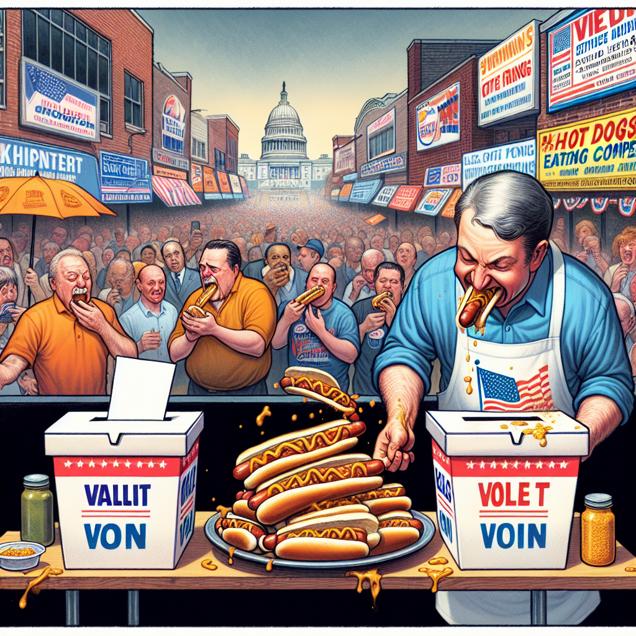 As the Democrat votes sizzled in, so did the grills at Nathan's, leading to a bun-believable surge in hotdog consumption. It seems the political heat was just too much to resist, igniting a hunger for victory snags in the champ!