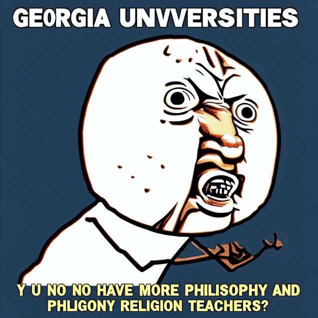 Create a meme inspired by the y u no meme that in some way references The number of university philosophy and religion teachers in Georgia. Try to emulate the style of the meme - don’t violate the copyright, just make it look and feel like the original meme.