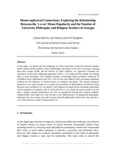 Meme-taphysical Connections: Exploring the Relationship Between the 'y u no' Meme Popularity and the Number of University Philosophy and Religion Teachers in Georgia The Journal of Internet Culture and Society Jan 2024 Reminder: This paper is AI-generated. Not real! |