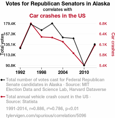 - The spurious research paper: Republican Votes in Alaska and Roadway Wrecks: A Revelatory Relationship