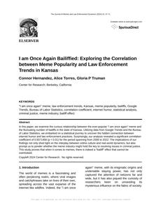 Please draft the title and abstract of an academic research paper presenting the findings of the connection between Popularity of the 'i am once again' meme and The number of bailiffs in Kansas. Make lots of jokes, goofy observations, and puns.