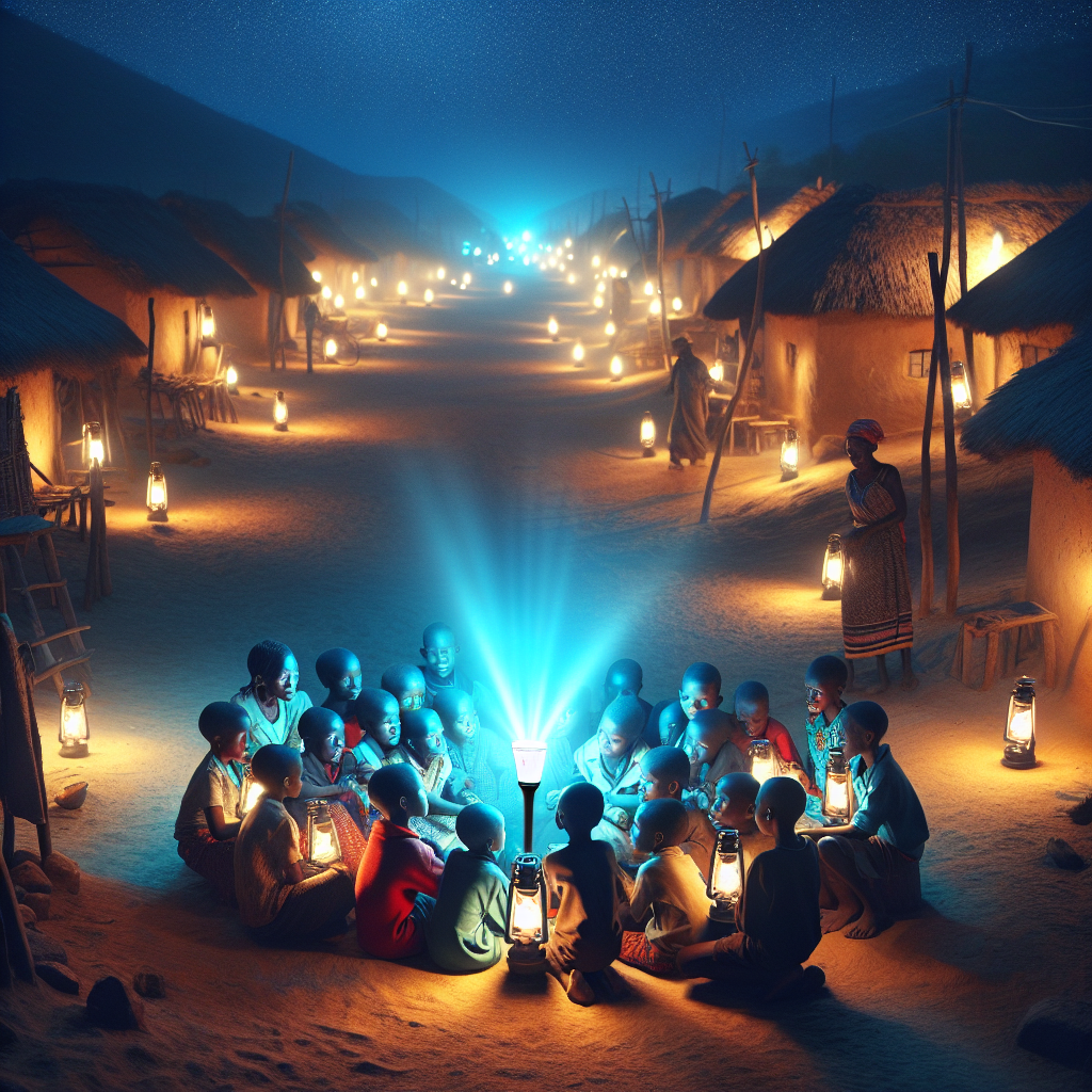 ChatGPT: Generate an image that looks like it is a scene from a Disney movie. Depict a serene Namibian village at night, with soft glowing kerosene lamps casting warm, flickering light across sandy streets. In the center of the scene, a group of villagers huddles around a smartphone. Their faces are lit up with excitement as they eagerly hit the "like" button on a Numberphile video. The flickering kerosene lamps and the growing number of likes on the video seem to be harmoniously intertwined, both sparking a sense of curiosity and inspiration in the hearts of those who encounter them.