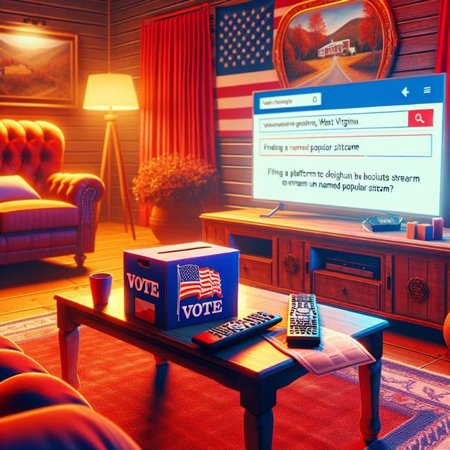 User prompt: Please describe a visual scene that prominently depicts both Republican votes for Senators in West Virginia and Google searches for 'where can i stream friends', in the following situation: The increase in Republican votes for Senators in West Virginia led to a surge in 'where can i stream friends' searches because as the political landscape shifted, so did the TV streaming options. It seems the race to stream Friends was really heating up, and just like a political campaign, everyone wanted to be in the winning party when it came to accessing their favorite sitcom. It's a classic case of red states, blue states, and all the streaming debates in between! Looks like in this election, the people of West Virginia weren't just voting for their Senators, they were also casting their ballots for the best way to enjoy some Central Perk camaraderie.. Keep the description simple.