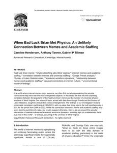 When Bad Luck Brian Met Physics: An Unlikely Connection Between Memes and Academic Staffing The International Journal of Internet Culture and Scientific Inquiry Jan 2024 |