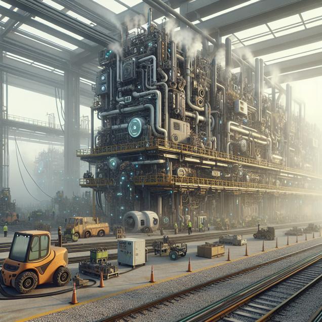 Prompt: Generate a photo-realistic image of a maintenance yard in Tampa, Florida, with a noticeable reduction in air pollution. Show fewer maintenance workers present and focus on machinery appearing well-maintained and autonomous in a cleaner environment. Depict the machines seemingly thriving and waving off the smog, contributing to the serene atmosphere. Capture the essence of the scene with attention to detail, lighting, and environmental changes. The depiction should include only scenes, people, and objects, it should not include text or speech bubbles.