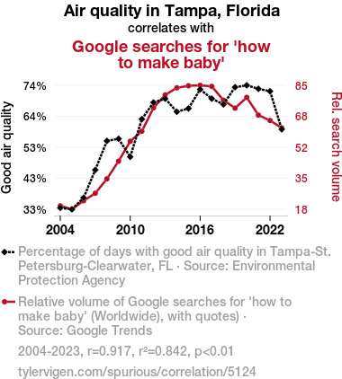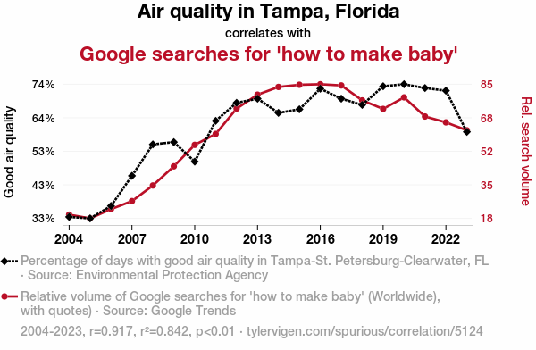 air quality, Tampa, Florida, Google search behavior, how to make baby, Google Trends, Environmental Protection Agency, correlation coefficient, p-value, human behavior, online search trends, family planning, environmental factors, social analysis
