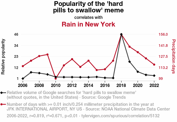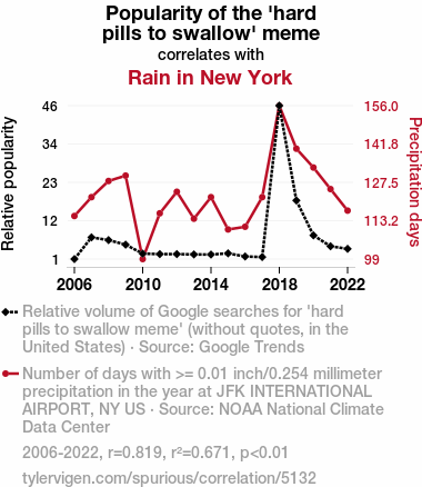 - The spurious research paper: Popularity of 'Hard Pills to Swallow' Meme and Rain in New York: A Data-Driven Dive