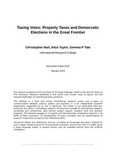 "Taxing Votes: Property Taxes and Democratic Elections in the Great Frontier"