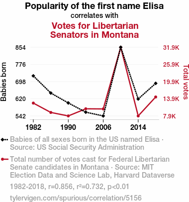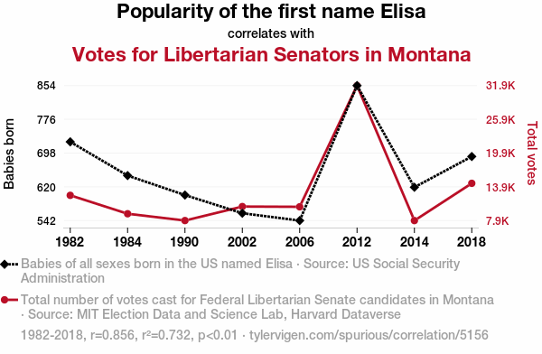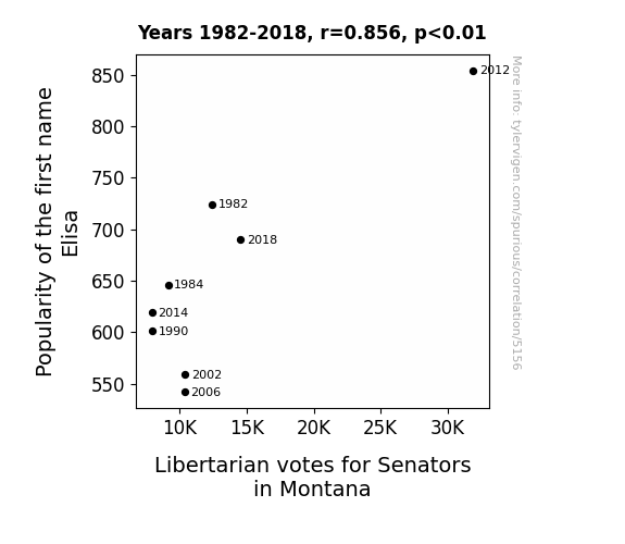 The purpose of this study is to investigate the unexpected relationship between the popularity of the first name Elisa and libertarian votes for senators in the state of Montana. The choice of the name Elisa for this analysis was both arbitrary and deliberate, as it enabled a relatively unique and distinct population for investigation. By utilizing data from the US Social Security Administration and the MIT Election Data and Science Lab, Harvard Dataverse, we conducted a thorough exploration of the potential association between the frequency of the first name Elisa and libertarian votes in Montana from 1982 to 2018. The study encompasses a timeframe characterized by significant shifts in political landscapes and sociocultural dynamics, which further enriches the depth of our analysis.