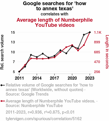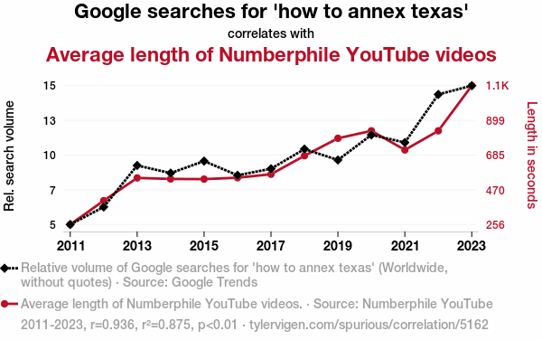 - The spurious research paper: Searching for Lone Star State Secrets: The Texas Annexation Googling and Numberphile Video Length Correlation