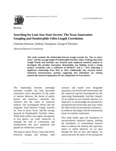 Searching for Lone Star State Secrets: The Texas Annexation Googling and Numberphile Video Length Correlation The Journal of Quirky Quantitative Studies Jan 2024 |