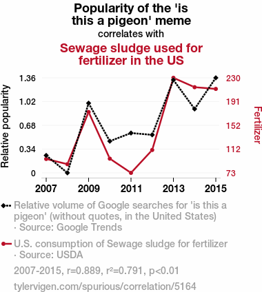 - The spurious research paper: Meme Mania: The Memorable Merge of 'is this a pigeon' Popularity and Peculiar Proliferation of Poo-based Fertilizer in the US