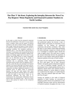 Please draft the title and abstract of an academic research paper presenting the findings of the connection between Popularity of the 'press f to pay respects' meme and The number of financial examiners in North Carolina. You can't resist a good dad joke. Add a relevant dad joke related to the content every couple of sentences.