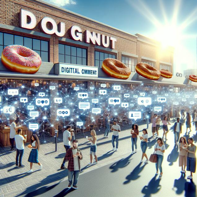Prompt: [ A photo-realistic image ] Depicting this scene: Amidst the rows of Krispy Kreme Doughnut stores across the US, the Total comments on the SmarterEveryDay YouTube videos soar like never before. With each doughnut consumed, insightful comments bubble up, creating a swarm of wisdom-filled discussions on science and technology. The doughnut stores stand tall, fueling a surge of intelligent discourse in the comment section, as if the glazed delights are the key to unlocking the secrets of the universe. Enhanced Image Generation Prompt: Generate an image of a bustling street lined with Krispy Kreme Doughnut stores stretching into the distance, with a bright, sunny sky overhead. People are enjoying doughnuts as they walk and converse on smartphones. Meanwhile, digital comment bubbles from the SmarterEveryDay YouTube channel emerge from each consumed doughnut, filling the air and intermingling with the conversations. The scene should convey a feeling of intellectual stimulation and community engagement brought on by the consumption of the doughnuts, blending the physical and digital realms in a visually captivating way. The depiction should include only scenes, people, and objects, it should not include text or speech bubbles.