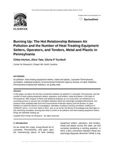 Burning Up: The Hot Relationship Between Air Pollution and the Number of Heat Treating Equipment Setters, Operators, and Tenders, Metal and Plastic in Pennsylvania The Journal of Environmental Health and Occupational Safety Studies Jan 2024 Reminder: This paper is AI-generated. Not real! |