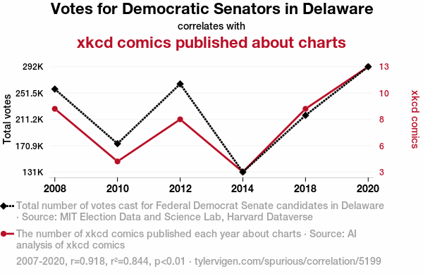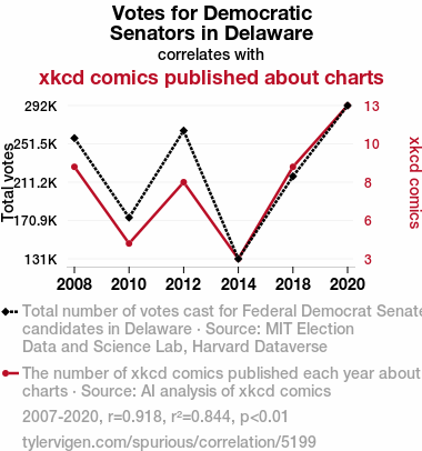 - The spurious research paper: Charting a Course: The xkcd-illating Connection Between Democrat Votes for Senators in Delaware and xkcd Comics
