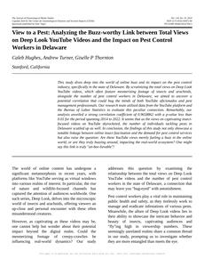 "View to a Pest: Analyzing the Buzz-worthy Link between Total Views on Deep Look YouTube Videos and the Impact on Pest Control Workers in Delaware"