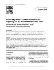 Dara’s Ditty: The Connection Between Dara's Popularity and 'It's Wednesday, My Dudes' Meme The Journal of Internet Culture and Meme Studies Jan 2024 Reminder: This paper is AI-generated. Not real! |