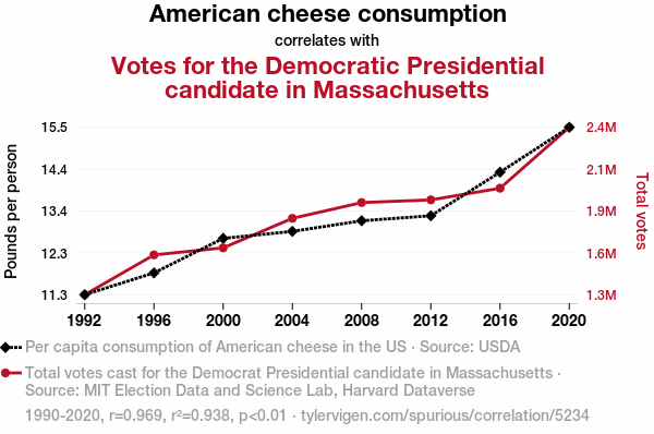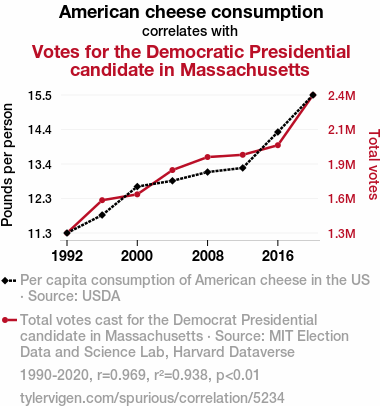 - The spurious research paper: Cheesy Votes: The Cheddar Effect on Democrat Preferences in Massachusetts