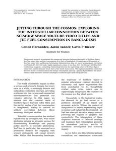 Jetting Through the Cosmos: Exploring the Interstellar Connection Between SciShow Space YouTube Video Titles and Jet Fuel Consumption in Bangladesh The International Journal of Interstellar Energy and Popular Culture Jan 2024 Reminder: This paper is AI-generated. Not real! |