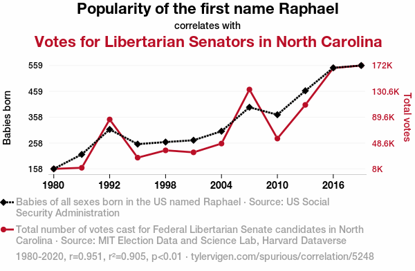 Raphael, popularity, name, libertarian votes, senators, North Carolina, US Social Security Administration, MIT Election Data and Science Lab, Harvard Dataverse, correlation coefficient, statistical analysis, causation, social trends, nomenclature