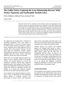 The Golden Ticket: Exploring the Sweet Relationship Between 'Willy Wonka' Popularity and Numberphile YouTube Likes The Journal of Confectionery and Online Popularity Jan 2024 Reminder: This paper is AI-generated. Not real! |
