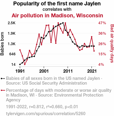 Jaylen, name popularity, air pollution, Madison, Wisconsin, correlation, Social Security Administration, Environmental Protection Agency, statistical analysis, naming trends, environmental factors, whimsical research, social sciences, environmental research