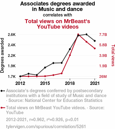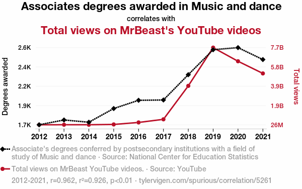 - The spurious research paper: Degree of Dance: The Correlation between Music and Dance Associates Degrees and MrBeast YouTube Views