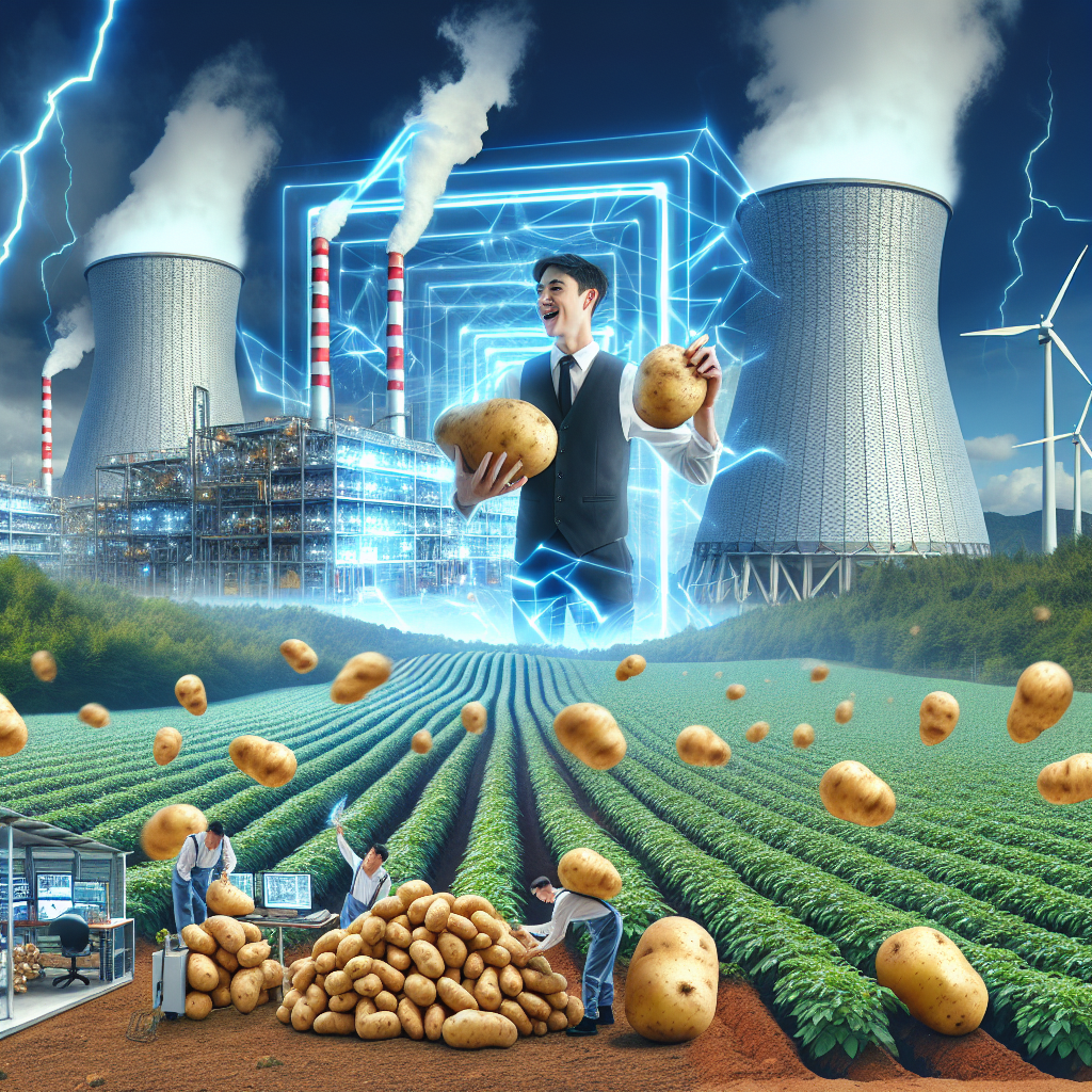 ChatGPT: A picture shows Thailand's geothermal power plants churning out energy while underground heat rises. Nearby, a vast field of potato plants flourishes in the warmth. Meanwhile, MrBeast is seen in his YouTube studio surrounded by heaps of potatoes, crafting lengthy and zany videos using the spuds in various creative ways.
