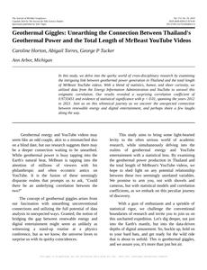 Please draft the title and abstract of an academic research paper presenting the findings of the connection between Geothermal power generated in Thailand and Total length of MrBeast YouTube videos. Make lots of jokes, goofy observations, and puns.