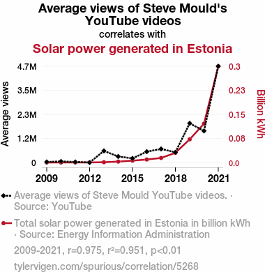 - The spurious research paper: Steve's Screen Time and Estonia's Sunbeam: A Rhyme Time Connection Between YouTube Views and Solar Power