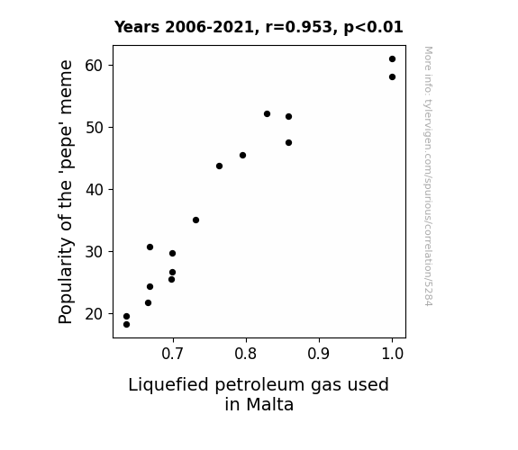 - The spurious research paper: Meme Magic and Maltese Gas: Exploring the Link between 'Pepe' Popularity and Propane Profusion