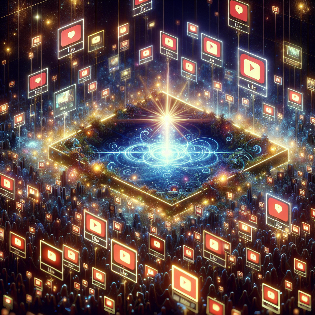 Prompt: An image that looks like it is a scene from A Disney Movie, where in a magical setting, a bustling YouTube page is filled with glowing Casually Explained video thumbnails arranged in a grid. Each video has a radiant digital halo hovering above it, symbolizing the likes it has received. The word "Miracle" floats delicately above these halos, intertwining with them, signifying the viewers' newfound faith and feel-good spirit. As the likes increase, the halos grow brighter and more abundant, creating a dazzling display of digital miracles. The depiction should include only scenes, people, and objects, it should not include text or speech bubbles.