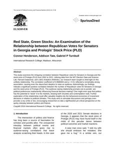 Red State, Green Stocks: An Examination of the Relationship between Republican Votes for Senators in Georgia and Prologis' Stock Price (PLD) The Journal of Political Economy and Financial Markets Jan 2024 Reminder: This paper is AI-generated. Not real! |