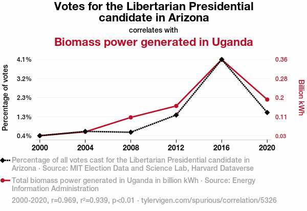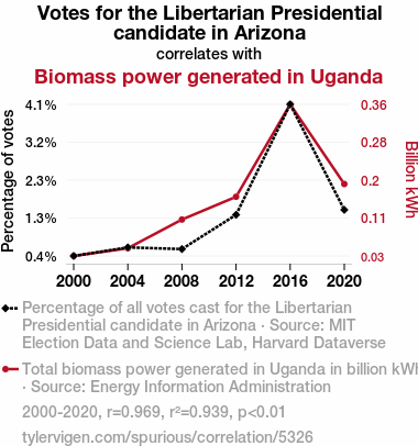 - The spurious research paper: From Libertarian Votes in Arizona to Biomass Might in Uganda: A Correlation That Leaves Us in Stitches