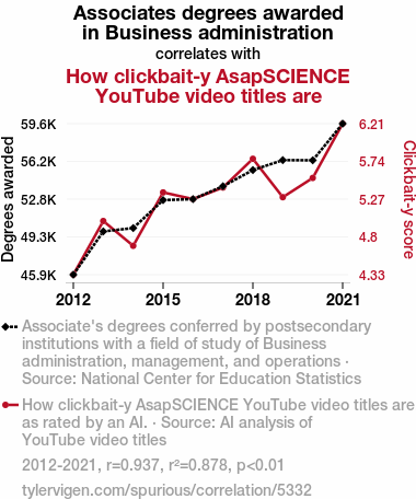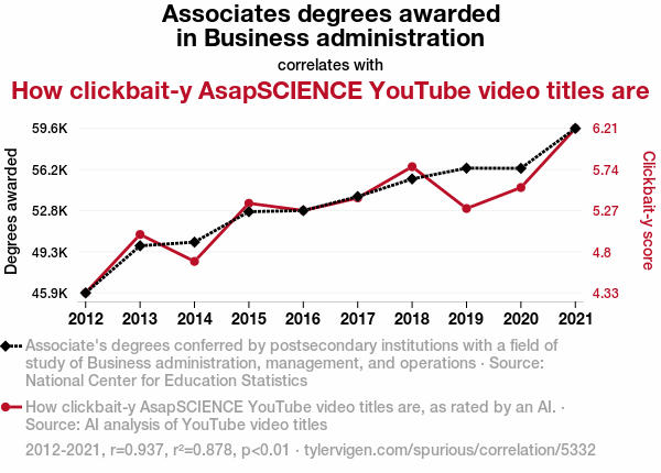 - The spurious research paper: Associates Degrees in Business Administration: A Clickbait-y Correlation with AsapSCIENCE YouTube Video Titles