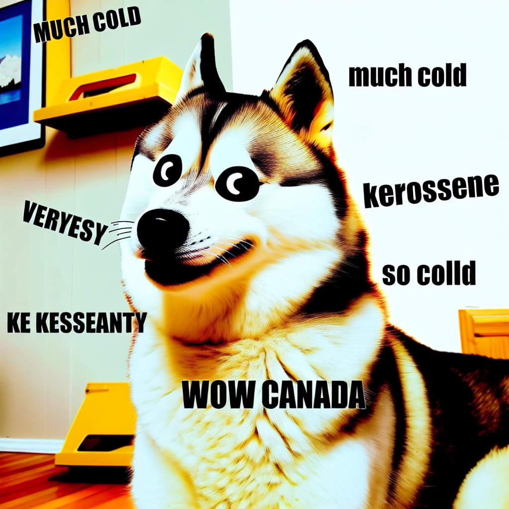 Create a meme inspired by the doge meme that in some way references Kerosene used in Canada. Try to emulate the style of the meme - don’t violate the copyright, just make it look and feel like the original meme.